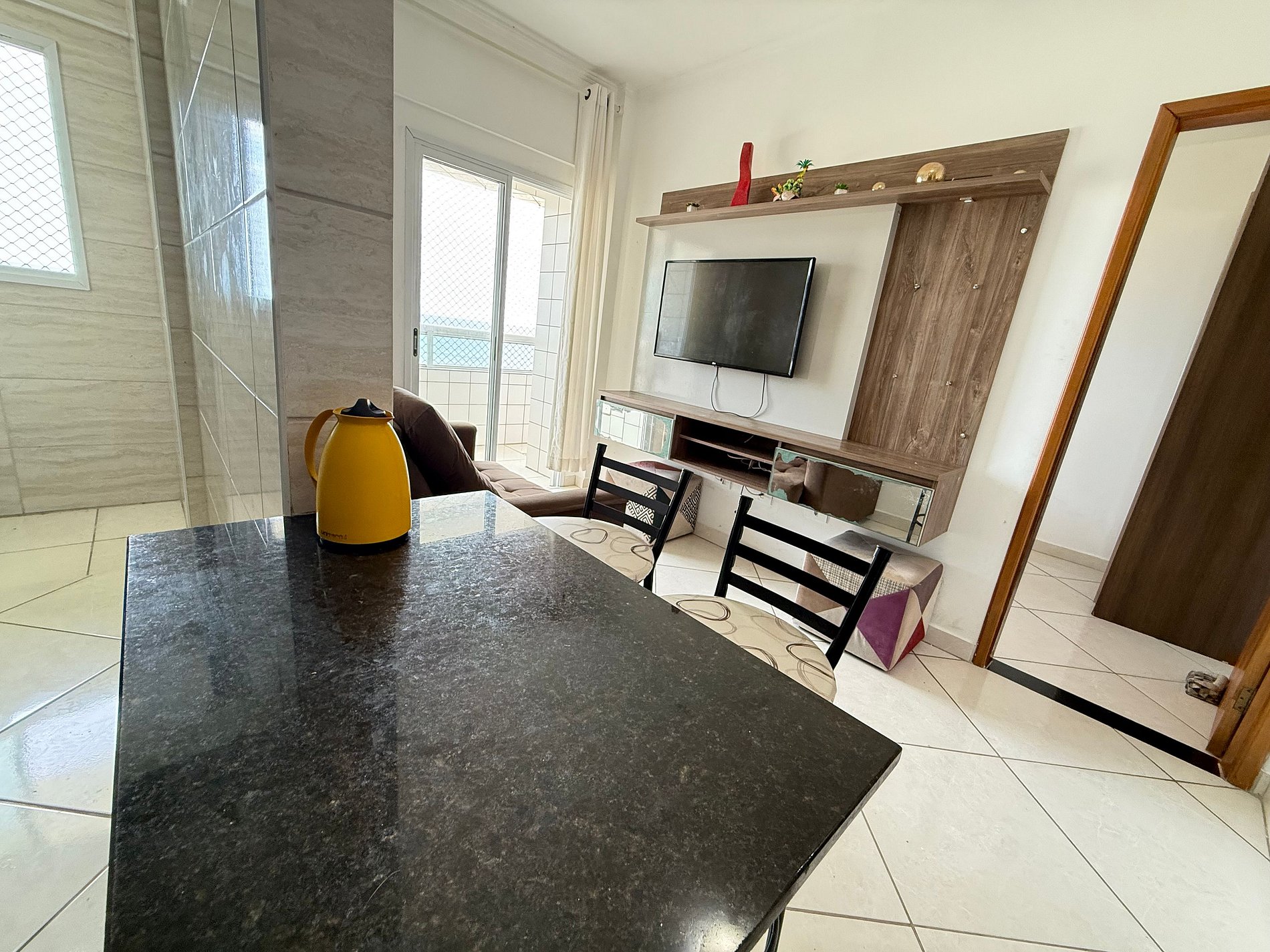 Este apartamento está localizado no bairro Maracanã em Praia Grande o bairro é bem tranquilo e fica na orla da praia. O bairro possui comodidades próximas como rodoviaria Terminal Tatico, bares e restaurantes, quiosque, mercado, feira livre, farmácia, padarias etc. Os carrinhos de praia localizados na orla fornecem cadeiras e guarda-sol.
