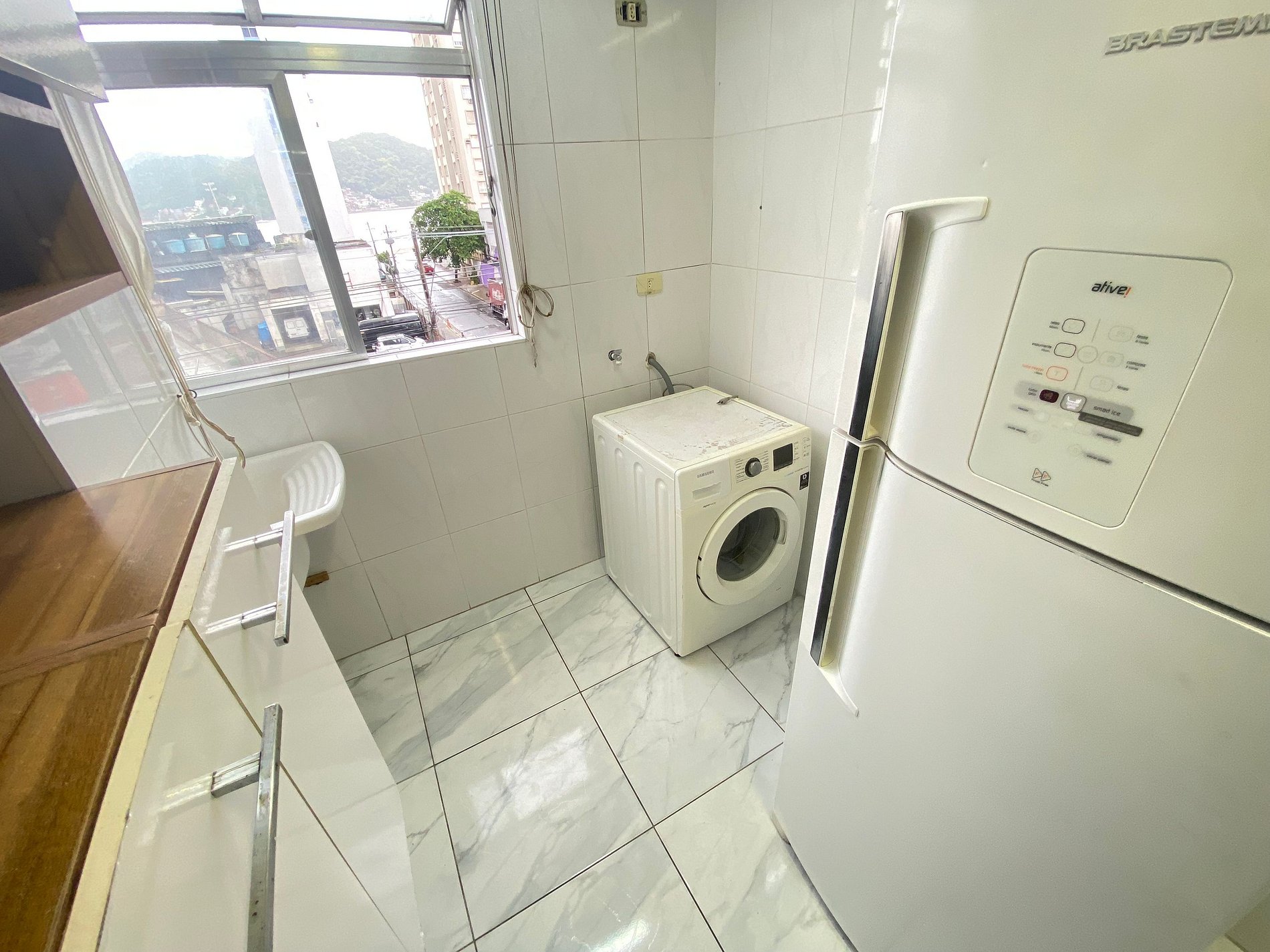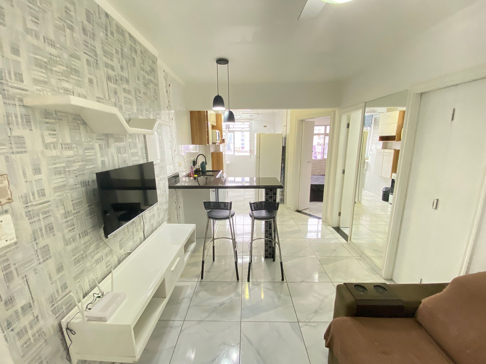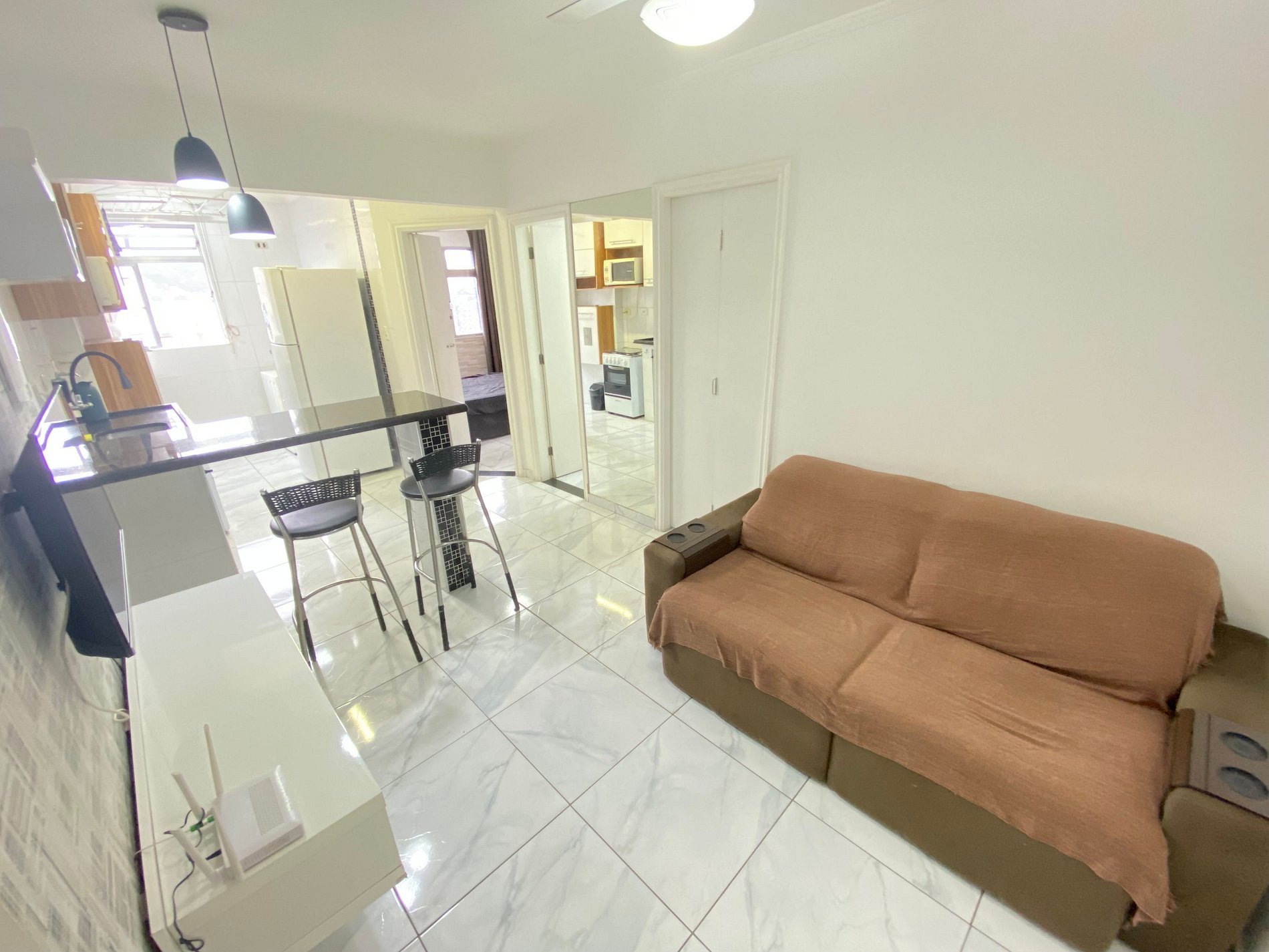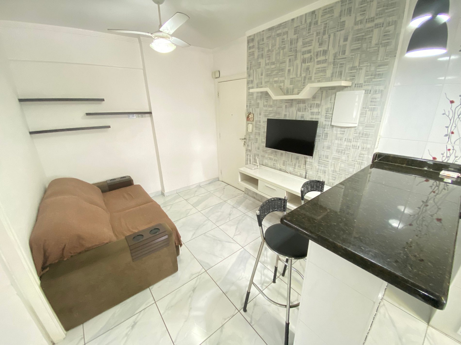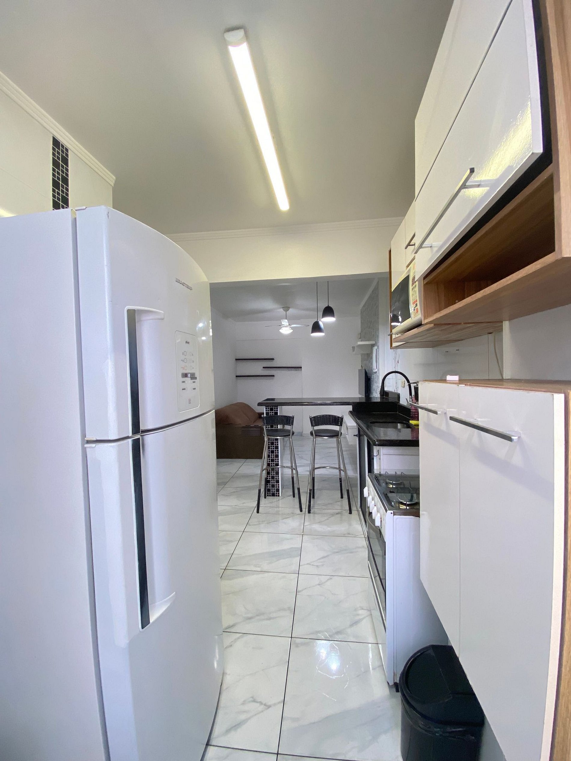 -Sala de estar e cozinha americana;