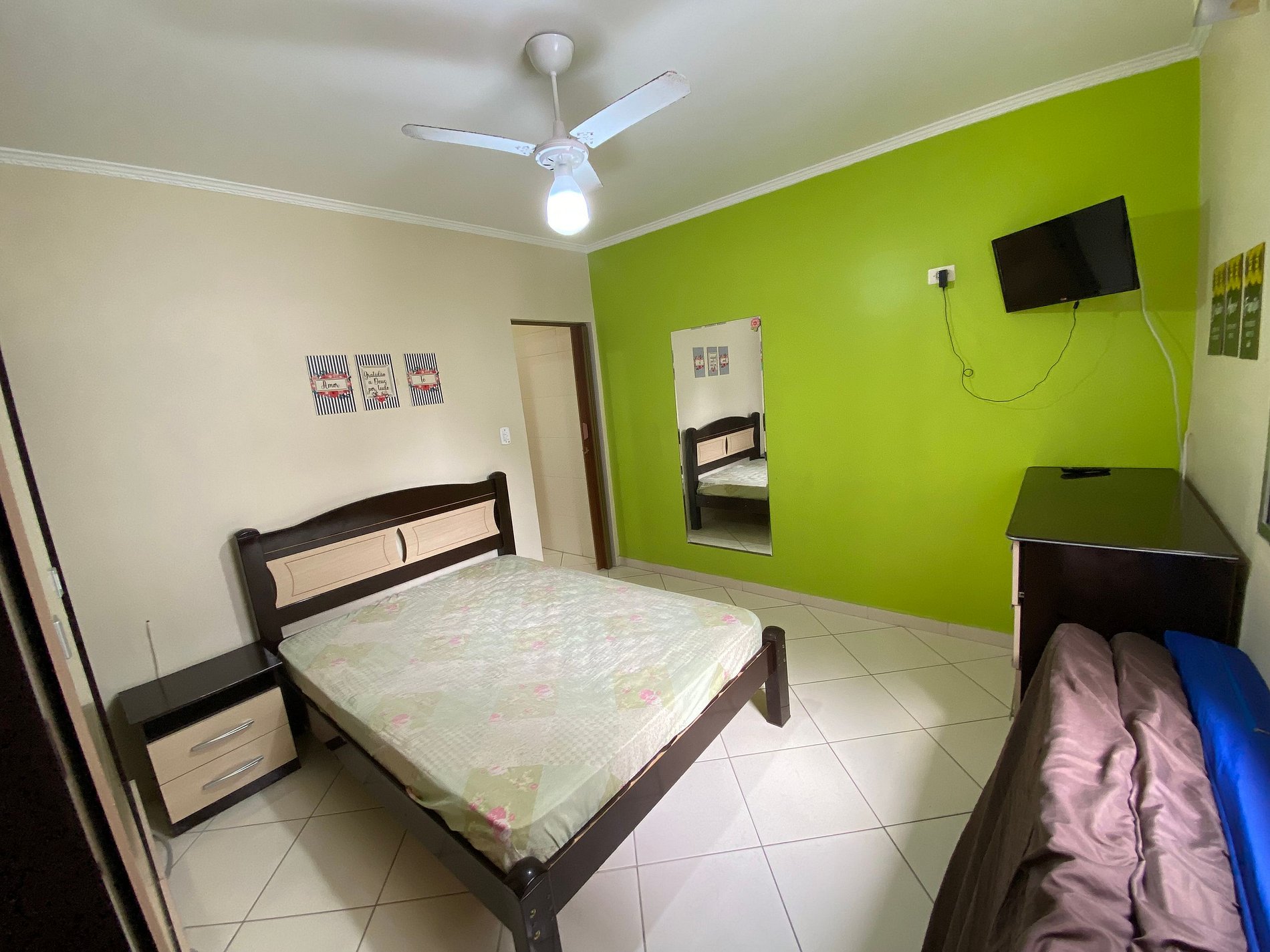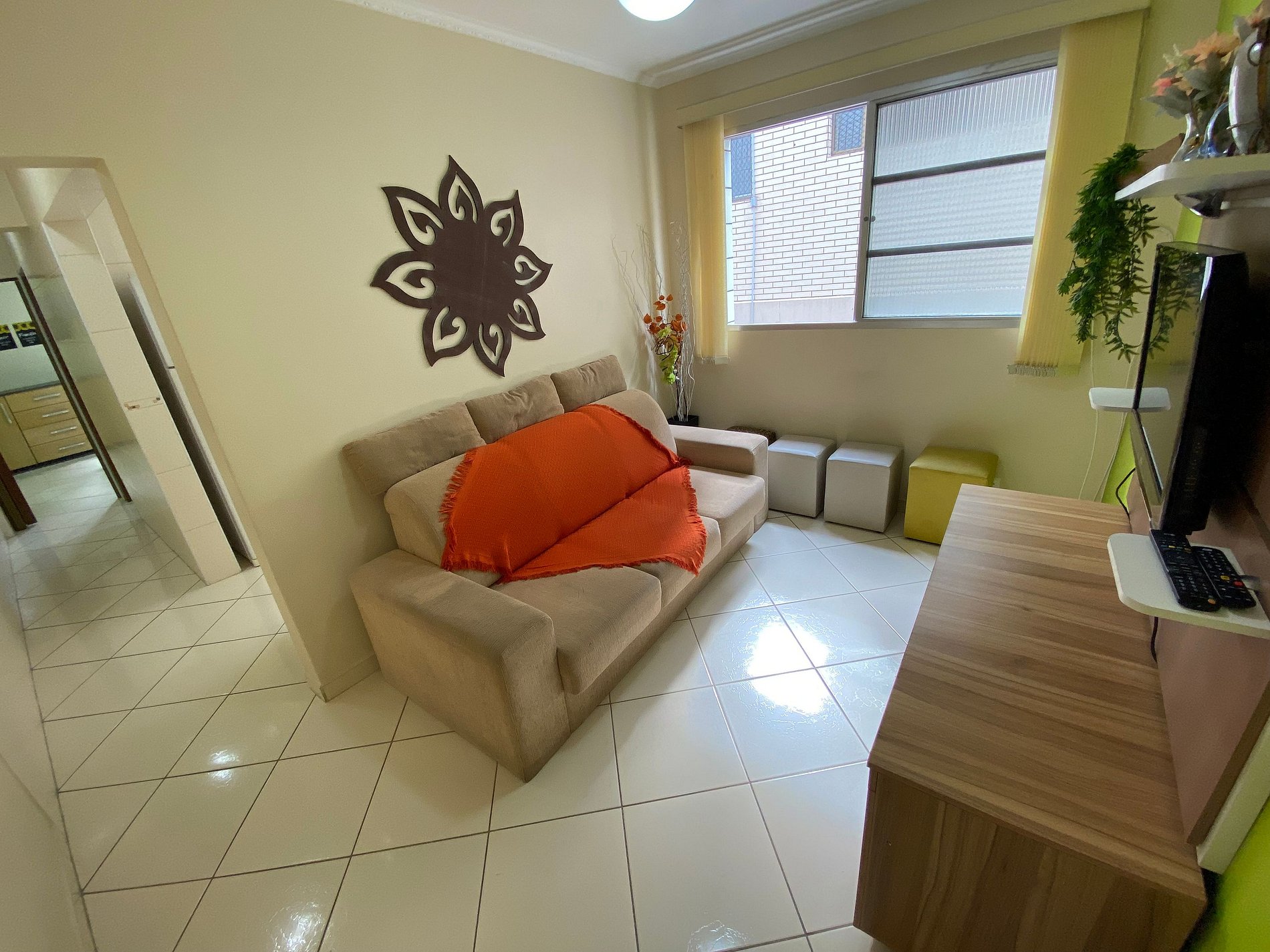 O apartamento tem um quarto está pronto para receber até 6 hóspedes. Temos uma cozinha funcional que propicia condições para preparo de refeições.